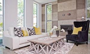 Utseendet til ekte tre i hjemmet ser straks rikt, dyrt og innbydende ut. Å ha en tekstur i hjemmet som du faktisk vil berøre er en fin måte å legge til noe spesielt. Tregulv er en vanlig måte å introdusere dette designelementet til et hjem, det samme er trebjelker, dører eller vinduslister. Men en heltrevegg som denne her gir en veldig sterk uttalelse. Å legge planker på veggene kan være en investering, og du må kanskje ansette en profesjonell for å installere dette for deg. Budsjett tips: Du kan finne kasserte paller og installere dem på veggene for å få et billigere utseende. Du kan også bruke et produkt som Stickwood som selger veldig tynne stykker ekte tre (se siden deres for hele spekteret av farger og stiler). Et peeling og stick lim på baksiden gjør dette superenkelt å installere alene. Hvis du ikke kan bruke den på veggene, kan du prøve å bruke den på hodegjerde eller skap.