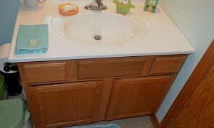 Som navnet antyder, monteres disse vaskerne fra benken. De er litt større enn åpningen på toppen, slik at benkeplaten skaper en liten leppe eller overheng over vaskeskålen. Baderomsvasken er vanligvis laget av porselenemaljert støpejern, glasslegemet, et metall som kobber eller rustfritt stål, eller av et komposittmateriale. Hvis vasken og toppen er komposittharpiks, kan vasken produseres integrert med toppen (som de "kulturmarmor" -toppene fra tidligere). Rørleggeravfall og forsyningslinjer er skjult i forfengelighet.