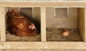 - Kjøp hekkekasser. Når høna legger et egg, ruller egget ut av hekkekassen, og høna når ikke det.