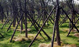 Busker som blomstrer på gammelt treverk